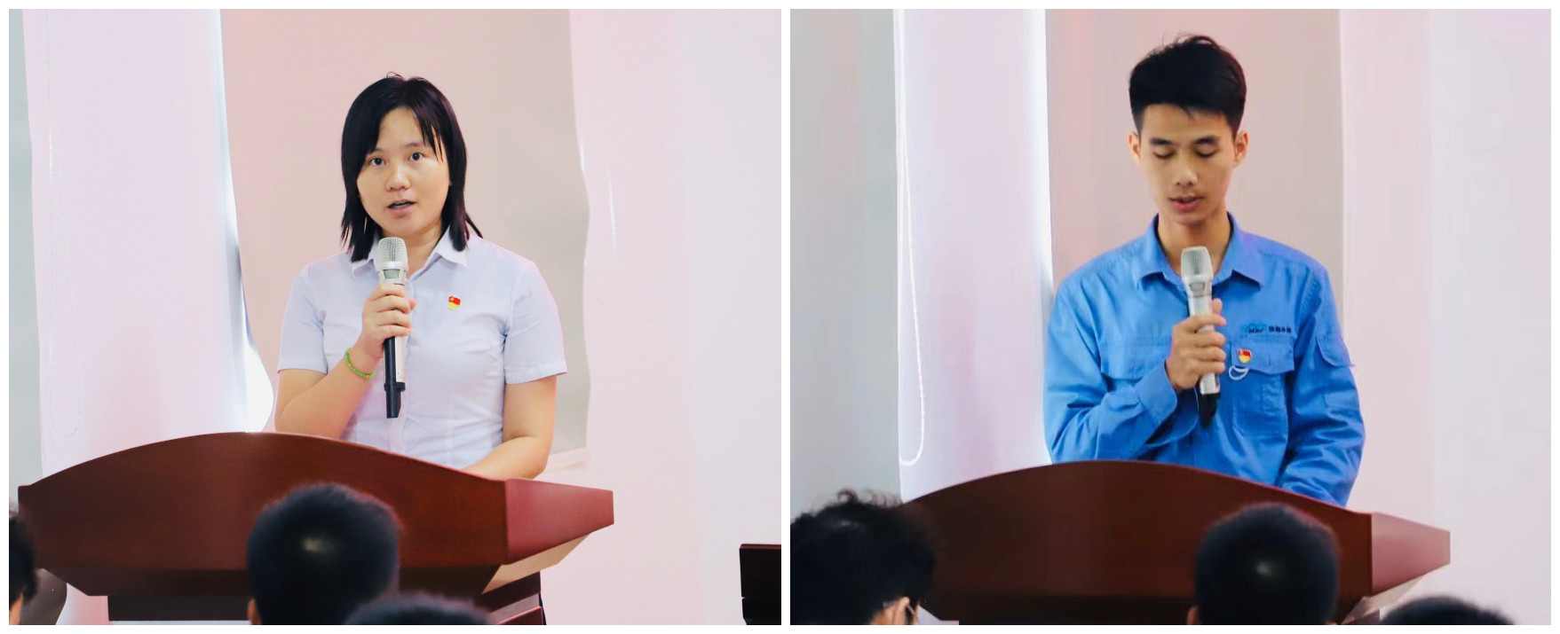 表彰對象作代表交流發(fā)言:機關黨支部許秀明、水投公司黨支部王柏林▼