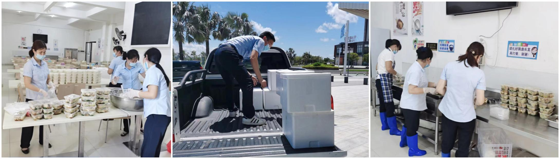 (中:集團下屬綜合服務(wù)公司蔡志英同志第一時間為醫(yī)護人員配送餐食)