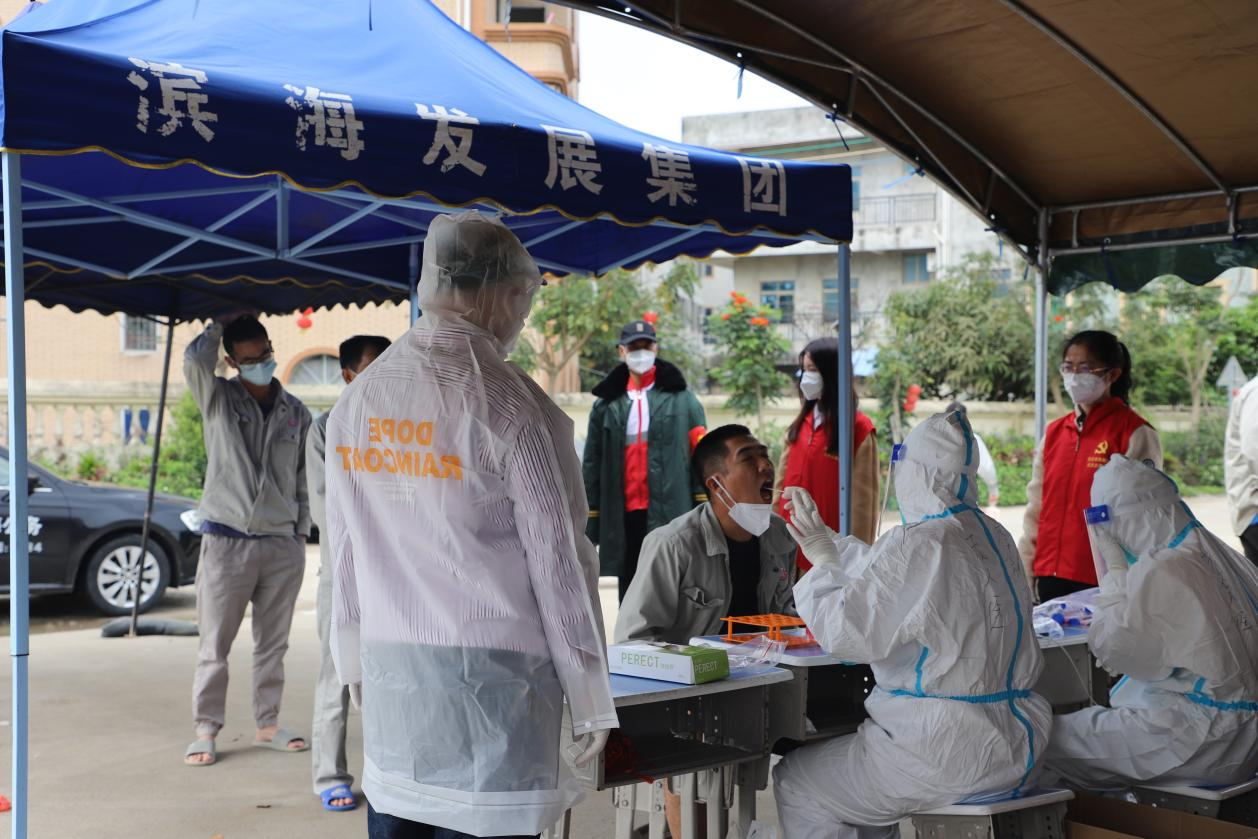 “應(yīng)采盡采、應(yīng)檢盡檢、不漏一人”的目標(biāo)和要求使大家緊繃心弦,不敢有絲毫松懈。集團志愿者們穿梭在排隊人群中,維持疏導(dǎo)秩序、登記核對信息、引導(dǎo)村民掃描二維碼、為村民解說注意事項、組織人員有序離開,確保現(xiàn)場平穩(wěn)安全、井然有序。集團廣大黨員、職工干部和各村委黨員干部、工作人員共同奮戰(zhàn)、共同堅守,構(gòu)建了企業(yè)單位與鎮(zhèn)、村黨員干部共同抗疫、服務(wù)群眾的戰(zhàn)斗堡壘。
